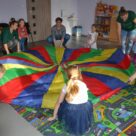 Klub Malucha i zabawy z chustą animacyjną oraz z kocykami.
