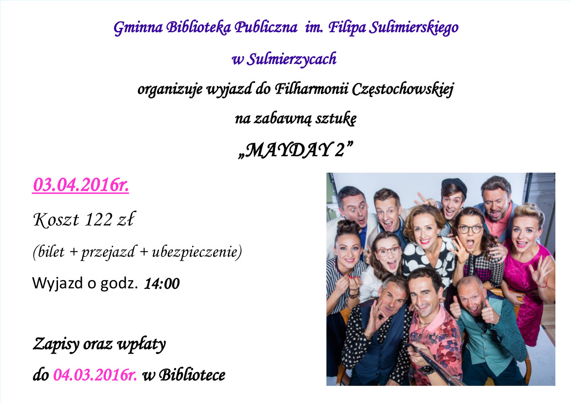 Wyjazd do Filharmonii Częstochowskiej Ogłoszenia26 stycznia 2016Możliwość komentowania Wyjazd do Filharmonii Częstochowskiej została wyłączona