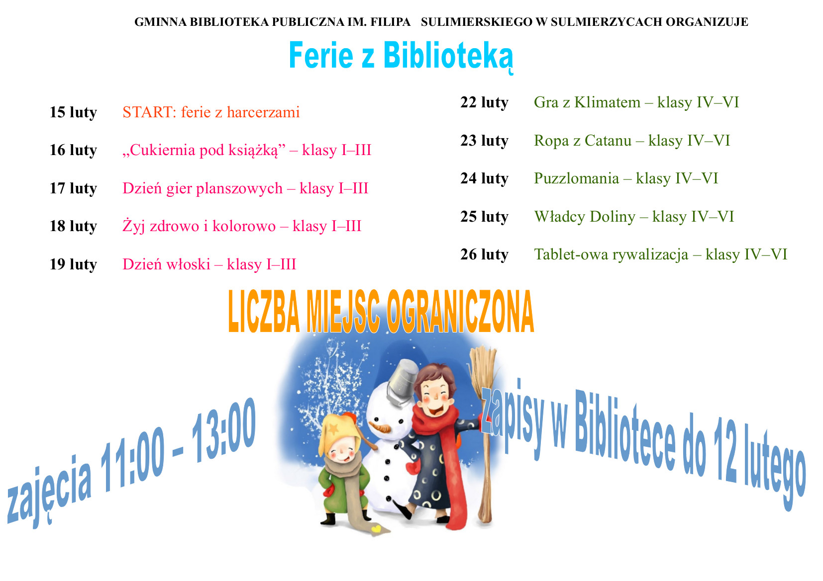 Ferie z biblioteką Ogłoszenia2 lutego 2016Możliwość komentowania Ferie z biblioteką została wyłączona