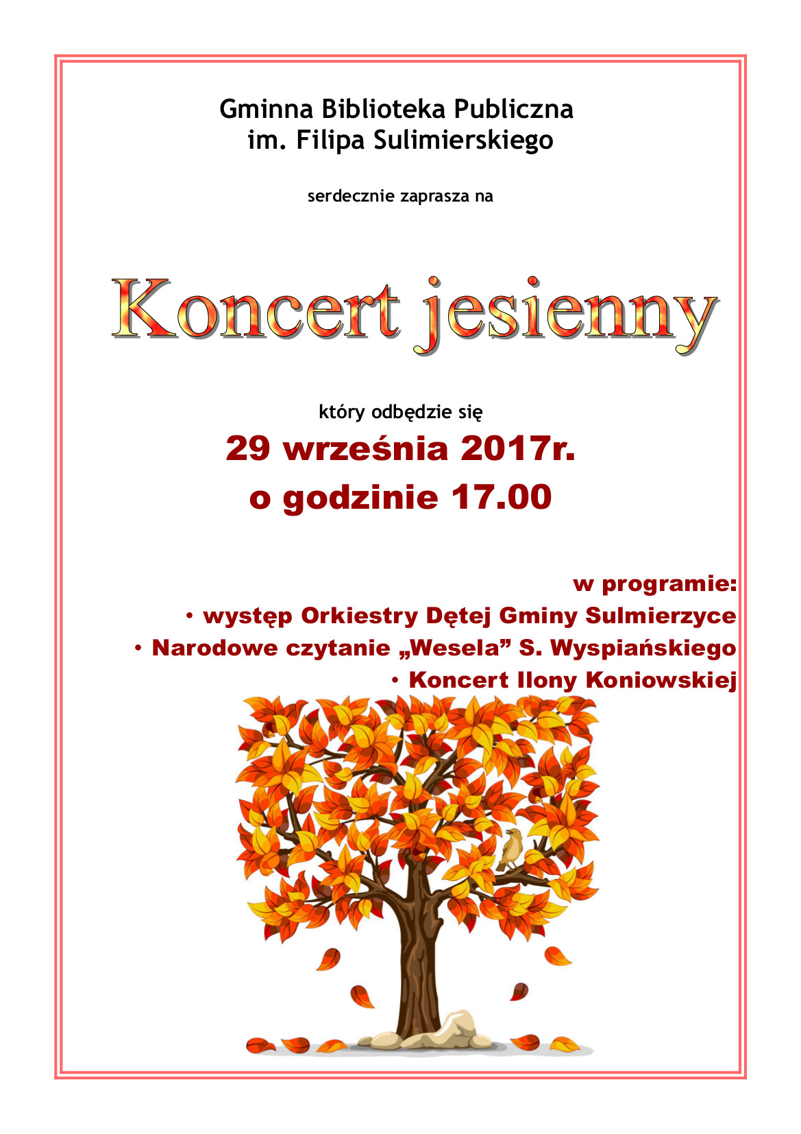 Zapraszamy na koncert jesienny!!! Ogłoszenia25 września 2017Możliwość komentowania Zapraszamy na koncert jesienny!!! została wyłączona