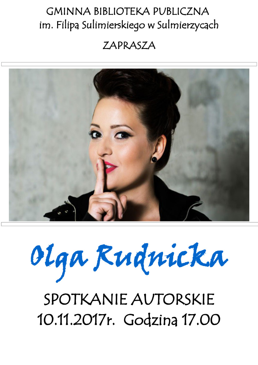 Olga Rudnicka – spotkanie autorskie Ogłoszenia2 listopada 2017Możliwość komentowania Olga Rudnicka – spotkanie autorskie została wyłączona