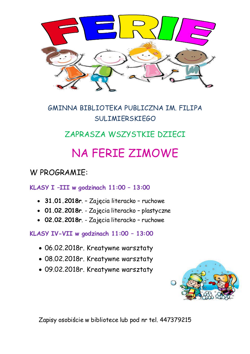 Trwają zapisy na ferie Ogłoszenia18 stycznia 2018Możliwość komentowania Trwają zapisy na ferie została wyłączona