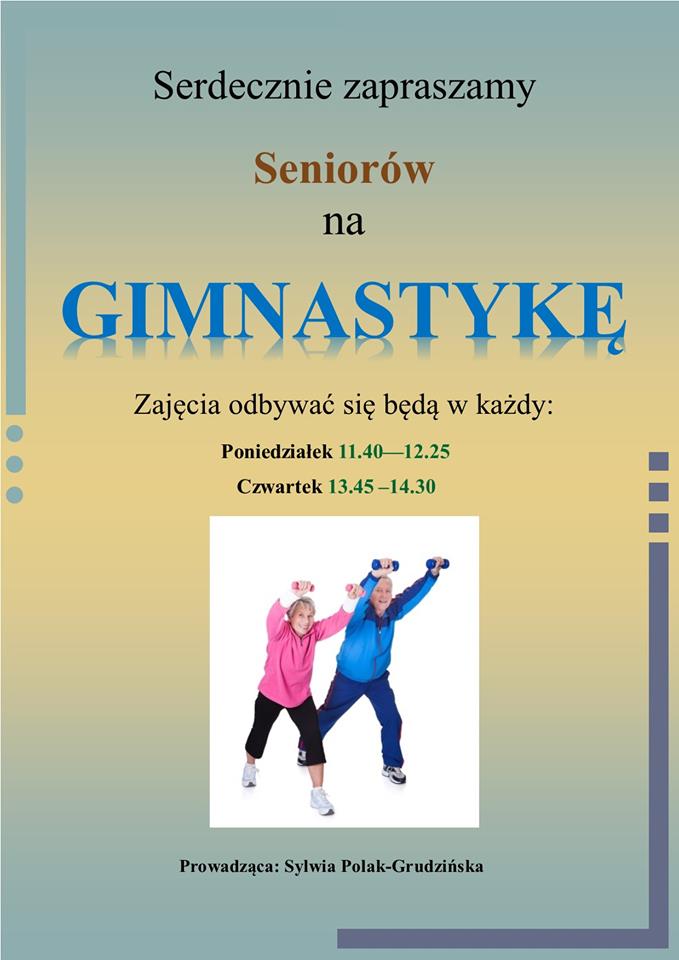 Gimnastyka dla seniorów Ogłoszenia27 sierpnia 2019Możliwość komentowania Gimnastyka dla seniorów została wyłączona Zapraszamy od września na zajęcia.
