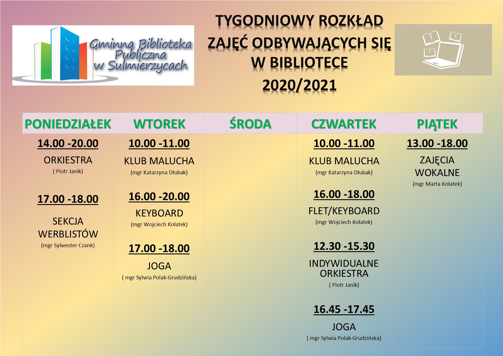 TYGODNIOWY ROZKŁAD ZAJĘĆ Ogłoszenia, Strona główna9 października 2020Możliwość komentowania TYGODNIOWY ROZKŁAD ZAJĘĆ została wyłączona