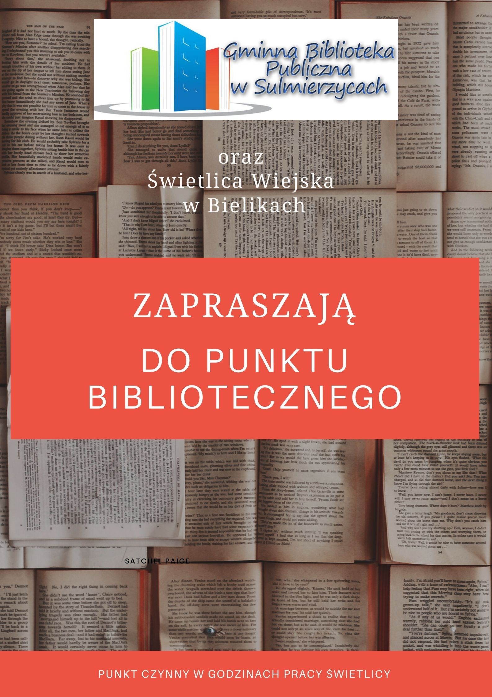 W Bielikach powstał kolejny Punkt Biblioteczny Punkty biblioteczne, Strona główna13 stycznia 2022Możliwość komentowania W Bielikach powstał kolejny Punkt Biblioteczny została wyłączona Z przyjemnością ogłaszamy, że w Bielikach powstał kolejny Punkt Biblioteczny:)
