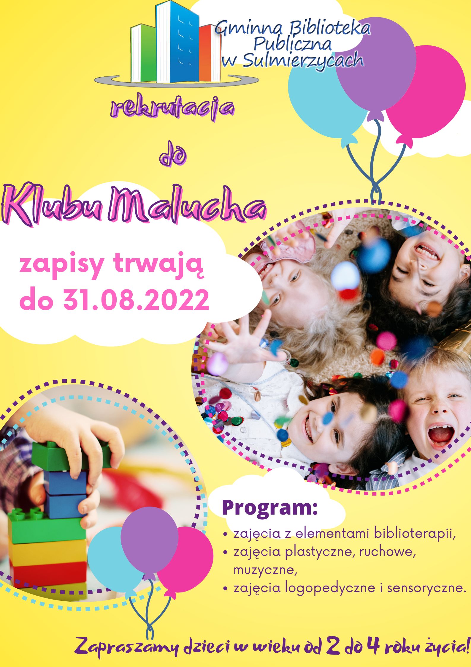Serdecznie zapraszamy dzieci w wieku od 2 do 4 lat do uczestnictwa w cotygodniowych zajęciach edukacyjnych.