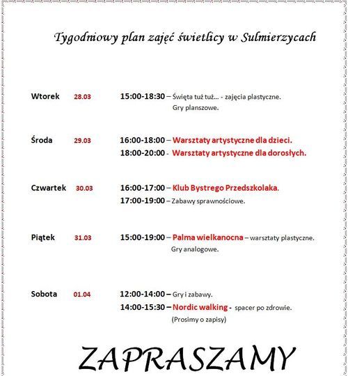 Tygodniowy plan zajęć świetlicy od 28. 03. 2023 r do 01. 04. 2023 r. Świetlica27 marca 2023Możliwość komentowania Tygodniowy plan zajęć świetlicy od 28. 03. 2023 r do 01. 04. 2023 r. została wyłączona Tygodniowy plan zajęć świetlicy od 28. 03. 2023 r do 01. 04. 2023 r. Zapraszamy! Plakat.