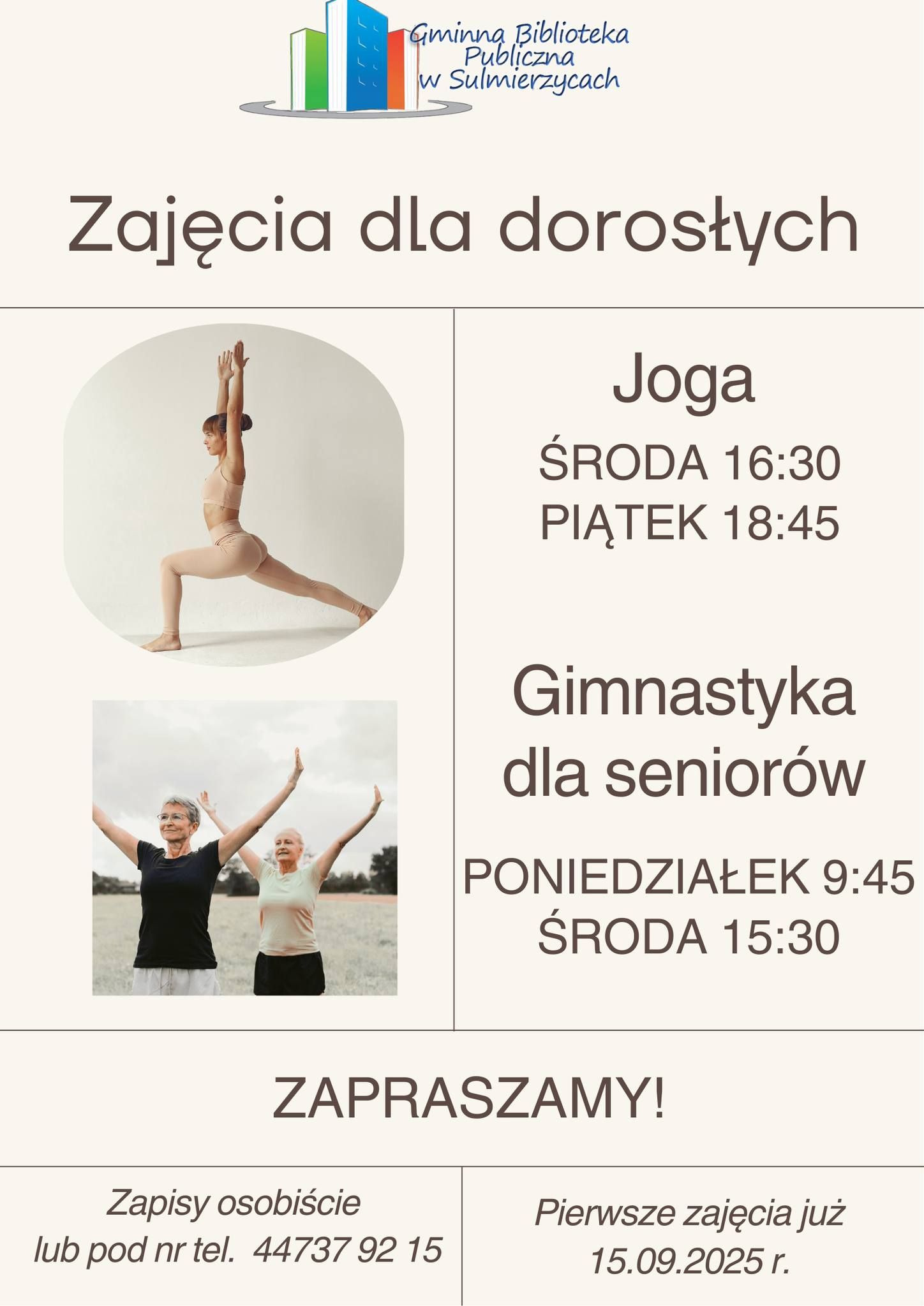Joga i gimnastyka dla seniorów Ogłoszenia, Strona główna4 września 2025Możliwość komentowania Joga i gimnastyka dla seniorów została wyłączona Zapraszamy do zapisów! Zajęcia poprowadzi Diana Ponimirska. Plakat.