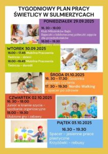 Tygodniowy plan pracy świetlicy Strona główna26 września 2025Możliwość komentowania Tygodniowy plan pracy świetlicy została wyłączona Zapraszamy! Plakat.