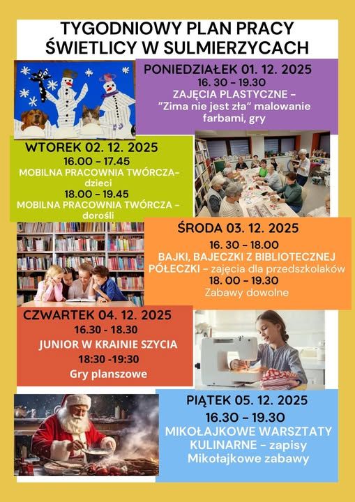 Tygodniowy plan pracy świetlicy Świetlica28 listopada 2025Możliwość komentowania Tygodniowy plan pracy świetlicy została wyłączona Zapraszamy! Plakat.