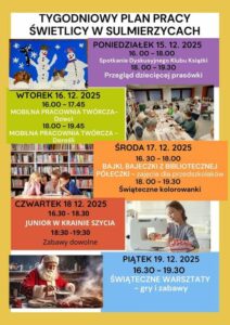 Tygodniowy plan pracy świetlicy Świetlica12 grudnia 2025Możliwość komentowania Tygodniowy plan pracy świetlicy została wyłączona Zapraszamy! Plakat.