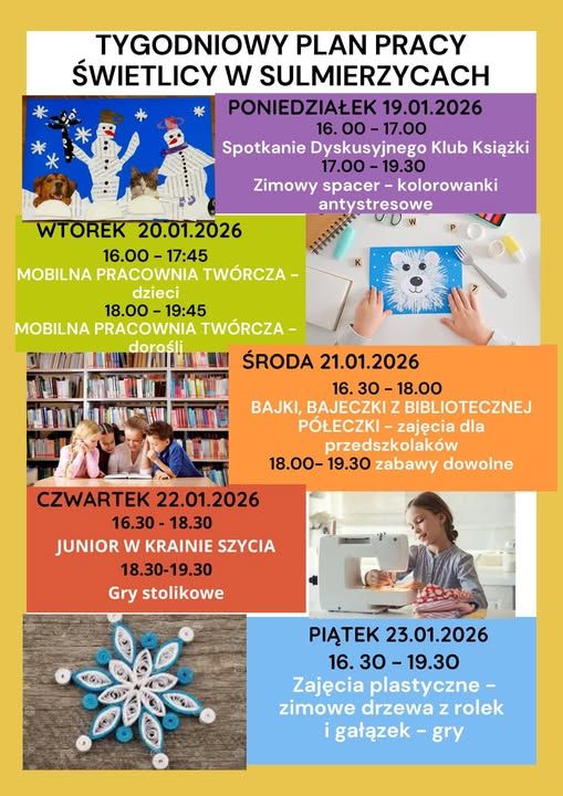 Tygodniowy plan pracy świetlicy Świetlica16 stycznia 2026Możliwość komentowania Tygodniowy plan pracy świetlicy została wyłączona Zapraszamy! Plakat.